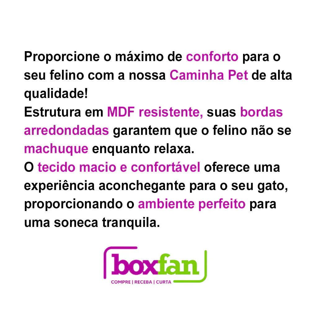 Dê ao seu gatinho o espaço perfeito para descanso com nossa Caminha de Chão para Pets! Confortável, segura e elegante, essa caminha foi projetada para agradar os sentidos dos felinos e trazer um toque de sofisticação à sua casa. A Caminha BoxFan é a escolha ideal para quem deseja um produto resistente e fácil de manter, sem abrir mão do estilo.