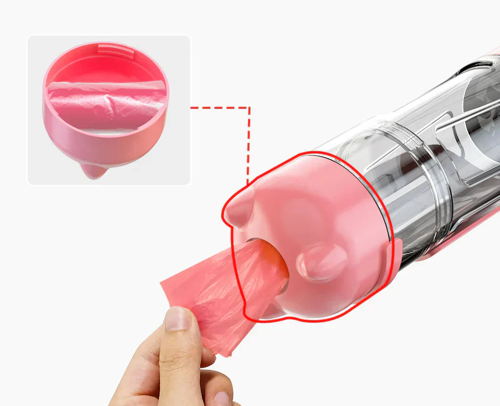 Tenha tudo o que precisa para manter seu pet hidratado durante suas aventuras com a Garrafa Portátil - 3 em 1! Com compartimentos para água e comida, além de um saco de lixo integrado, esta garrafa é a solução ideal para passeios e viagens com seu animal de estimação. Praticidade e conveniência em um único acessório!