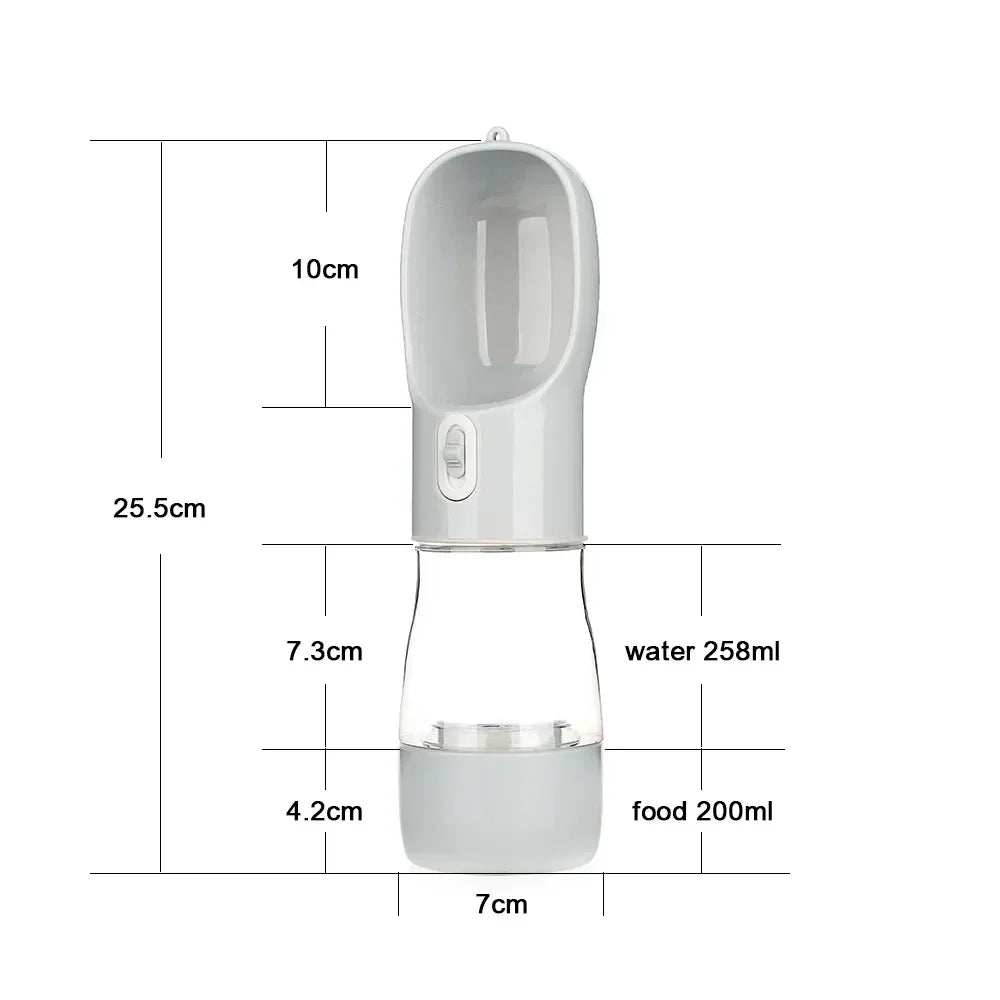 "Facilite a vida do seu pet em movimento com a Garrafa Portátil para Água e Ração. Proporcione praticidade e conforto durante viagens e passeios. Adquira agora para facilitar a vida do seu fiel companheiro!"